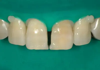 治療前の状態を確認し、前歯の隙間を矯正治療以外で歯を削らずに閉じる方法を提案します