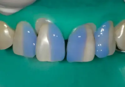歯の表面を清掃してコンポジットレジンを接着させる準備をします